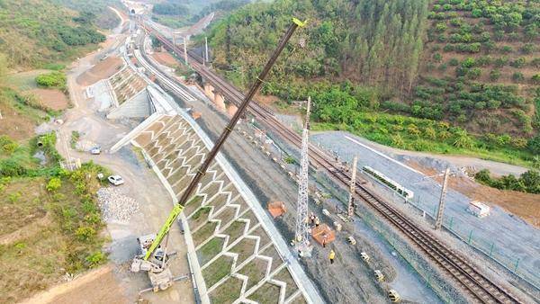 黄百铁路连接贵州黄桶至广西百色,全长约315公里,设计时速160公里,为国家Ⅰ级单线电气化铁路,是西部陆海新通道的标志性工程。它北接沪昆铁路,南连南宁至昆明铁路,沿线途经百色革命老区以及苗族、瑶族、布依族等民族地区。其中,广西段正线长138.79公里,桥隧占比90.5%,共有桥梁35座、隧道33座,共设车站12个,其中改建车站2个,新建中间站3个,会让缓开站7个。除隧道之外,总共需要组立支柱1363根。为保障项目工程的施工质量与建设进度,国铁南宁局南宁供电段抽调百色供电车间技术骨干成立专班提前开展施工介入,为后续四电工程顺利启动奠定基础。