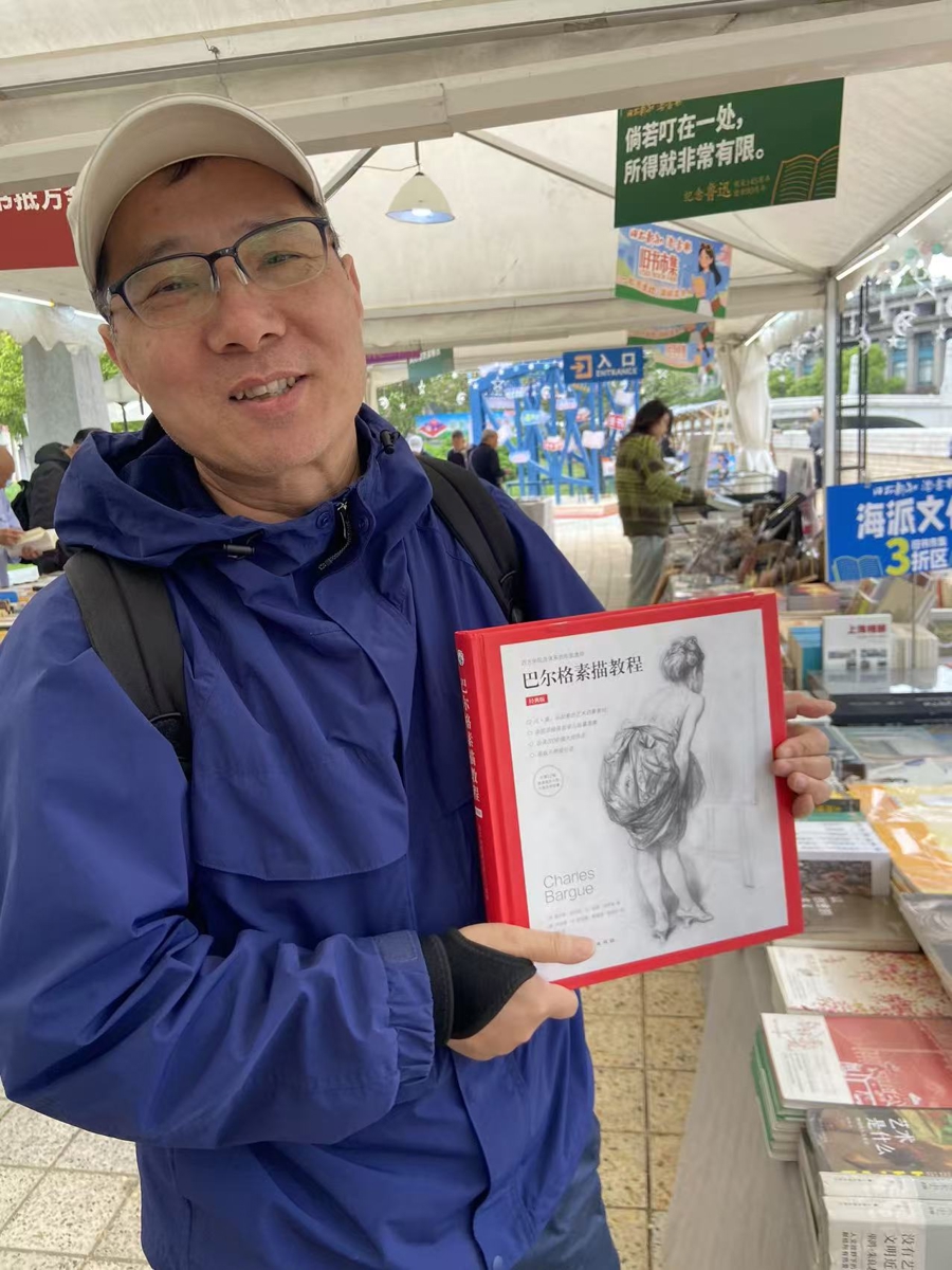 绘画爱好者徐学军,居家习素描,旅游习写生,有美展必想方设法去参观。漫步市集,看中名家素描画册,“是精装本,定价贵,但品相好,打3折,毫不犹豫入手!”找到宝贝的喜悦之情溢于言表。