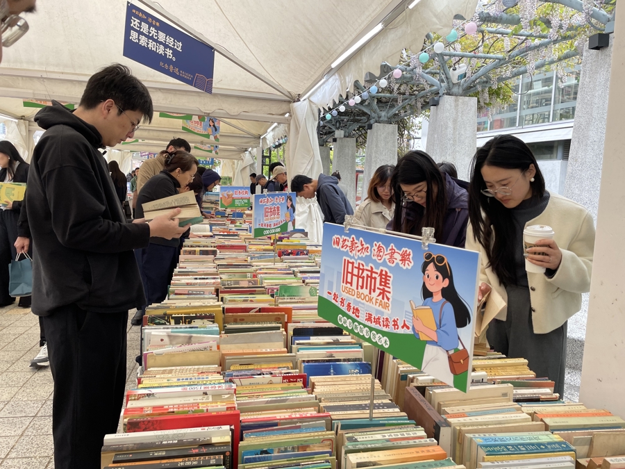 微风拂面,放眼是外滩地标建筑,对岸“停泊”着上海首个“文学邮轮”虹书舫,虹口北外滩美好阅读节同期启幕。“上海把绝佳地段给了阅读和市集,这座城市有眼光!”中午时分,附近上班的白领严女士出来散散步,一眼就看到了“樱花谷旧书市集”招牌,“这么好的城市景观和阅读氛围融合在一起,令人惬意,内心节奏也慢下来了。”