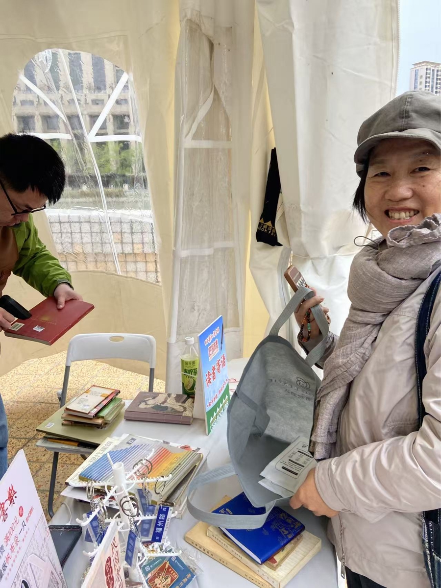 有淘到心仪读物的畅快,也有开盲盒版的意外惊喜。即将退休的杨女士,少儿时有个画家梦,因种种原因未能如愿。听说旧书市集的美术书打3折,便兴冲冲赶来了。花鸟虫草、工笔写意,选了一本又一本,算下来只花了176元。她喜笑颜开,“老便宜的。”